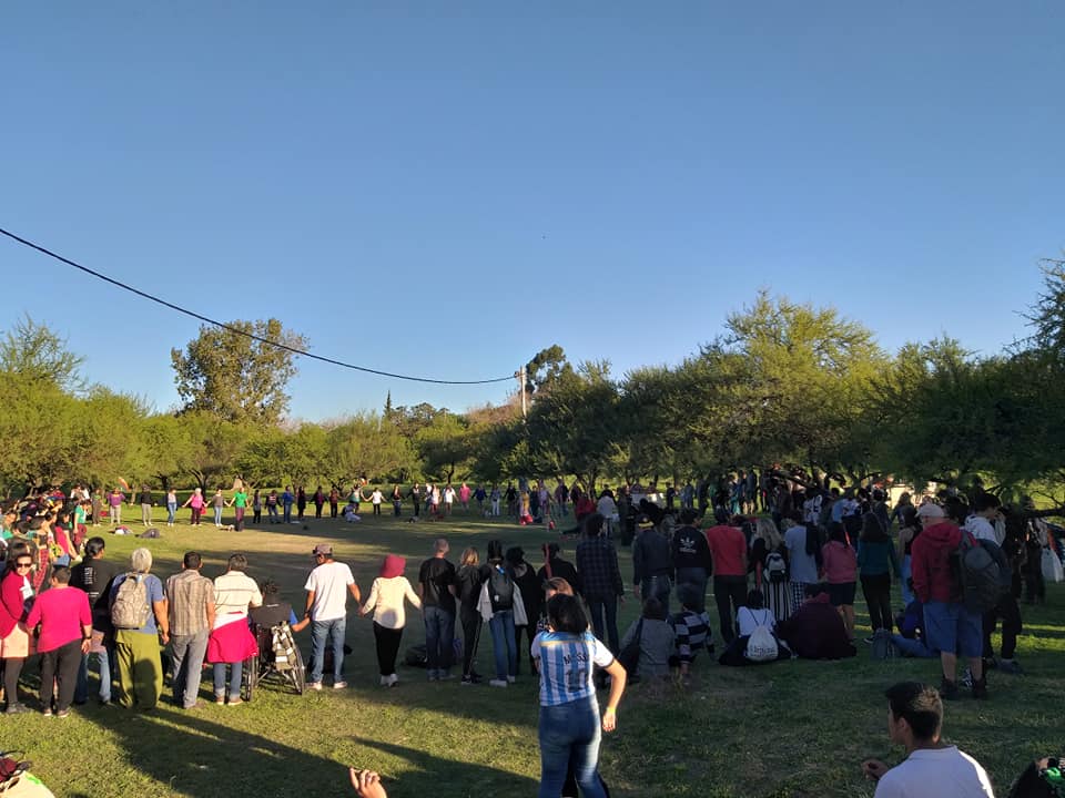 Em Entre-Rios, nos reunimos num espaço aberto, foi acesa um fogueira, demos as mãos e formamos uma roda muito grande que ia caminhando e girando. (Manoel, do Equador, se tornou o acendedor de fogueiras).