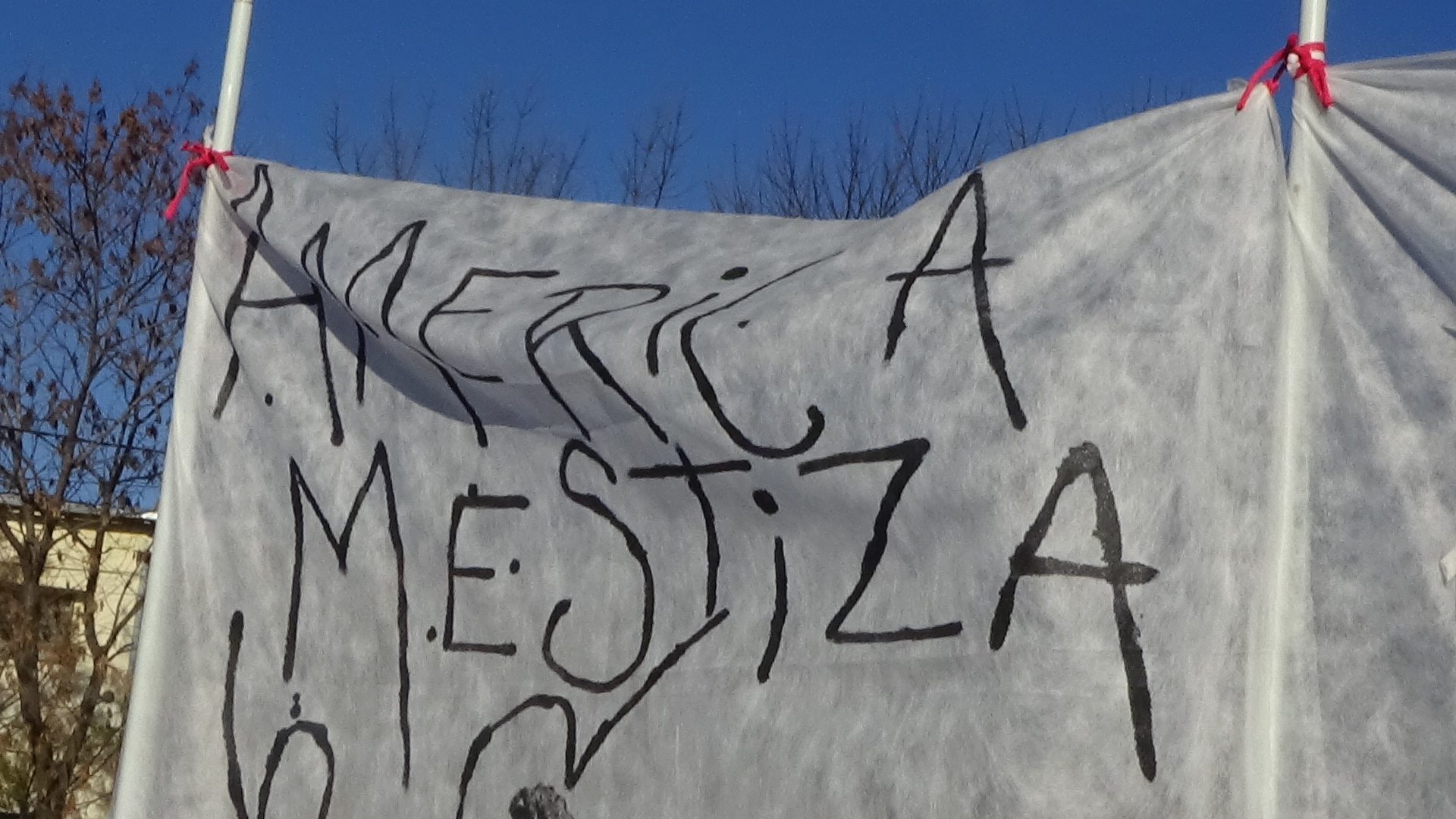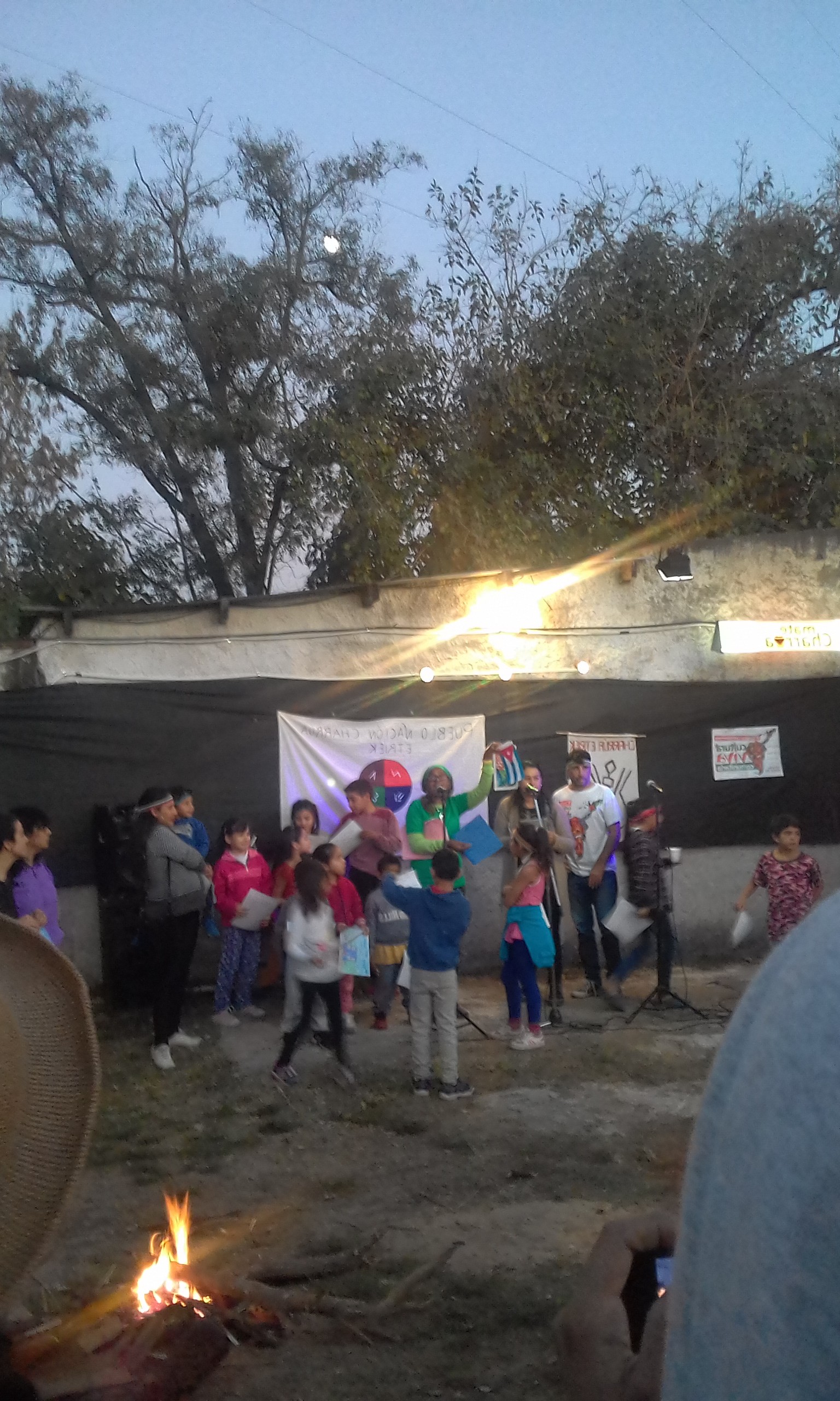 Depois, saindo da Cidade de Paraná (na província de Entre-Rios) em direção a Buenos Ayres, fomo visitar a Escola Popular Charrúa Etriek, num vila muito simples, com rádio comunitária. Quando os micros chegaram, muitas pessoas nos esperavam e nos saudavam entusiasmadas. A recepção foi muito calorosa: pessoas de baixo poder aquisitivo, muitas crianças, nos receberam com bolo de fubá, pão com geleia e suco. Lembrava algum lugar da minha infância, me sentia no Brasil… O pequeno espaço da escola, mais parecia uma galeria de arte, tantas obras ali expostas. Manoel, do Equador, acendeu uma fogueira. Cantamos, dançamos e nos abraçamos. Foi lindo!