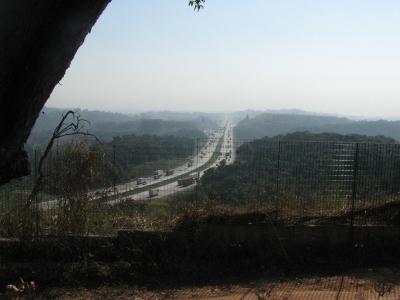 Avistamos uma estrada, era o Rodoanel. De frente para o Rodoanel, descansamos sentadas num banco de madeira sob uma árvore, nem acreditávamos estar vivendo aquela situação.