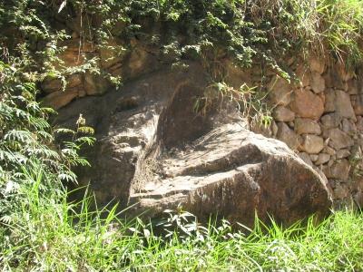Passamos por um local chamado Vista Alegre e descobrimos que já estávamos no município do Embu das Artes e, quando vamos chegando na cidade, surpresa, um muro de pedras sobrepostas sem argamassa, pedras parecidas como as da Fonte, segurava o último barranco da estrada de terra antes que ela se juntasse à uma rua asfaltada da cidade.